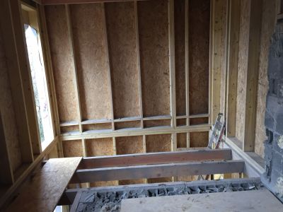 Création des murs ossature bois sur toit en charpente traditionnelle